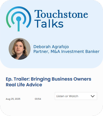 As a leading lower middle market M&A advisory firm in the Northeast, Touchstone Advisors provides a wide range of services including sell-side and buy-side representation, estimates of business value and investment banking services such as capital and debt raises. We prioritize confidentiality and our client’s unique needs when advising privately held and family-owned companies. For all of our services we work with business owners to learn every detail about their business and for sell-side clients we ultimately market your company nationwide in a competitive, comprehensive process that will maximize shareholder value. We understand that your company represents the culmination of years of hard work, dedication and sacrifice and we will develop an exit strategy that makes sense for you and your family.